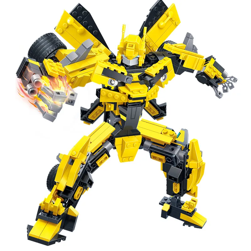 free shipping 2 in 1 Grande Robot Giallo Modelli di Blocchi Auto 584 pz Building Blocks Set Mattoni Assemblati Gi